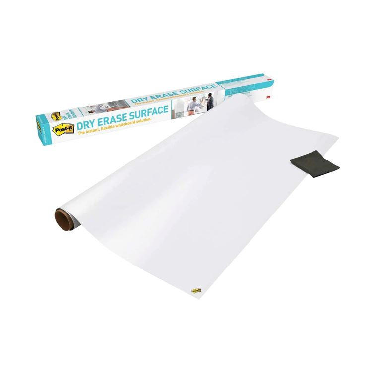 The Post-it® Super Sticky Dry Erase Surface is designed to stick to a variety of painted drywall and steel surfaces, glass, finished wood, and existing whiteboards or chalkboards. A high-performance surface to help you explore without bounds. Apply vertically or horizontally on painted drywall, painted steel, glass, finished wood, and existing whiteboards or chalkboards