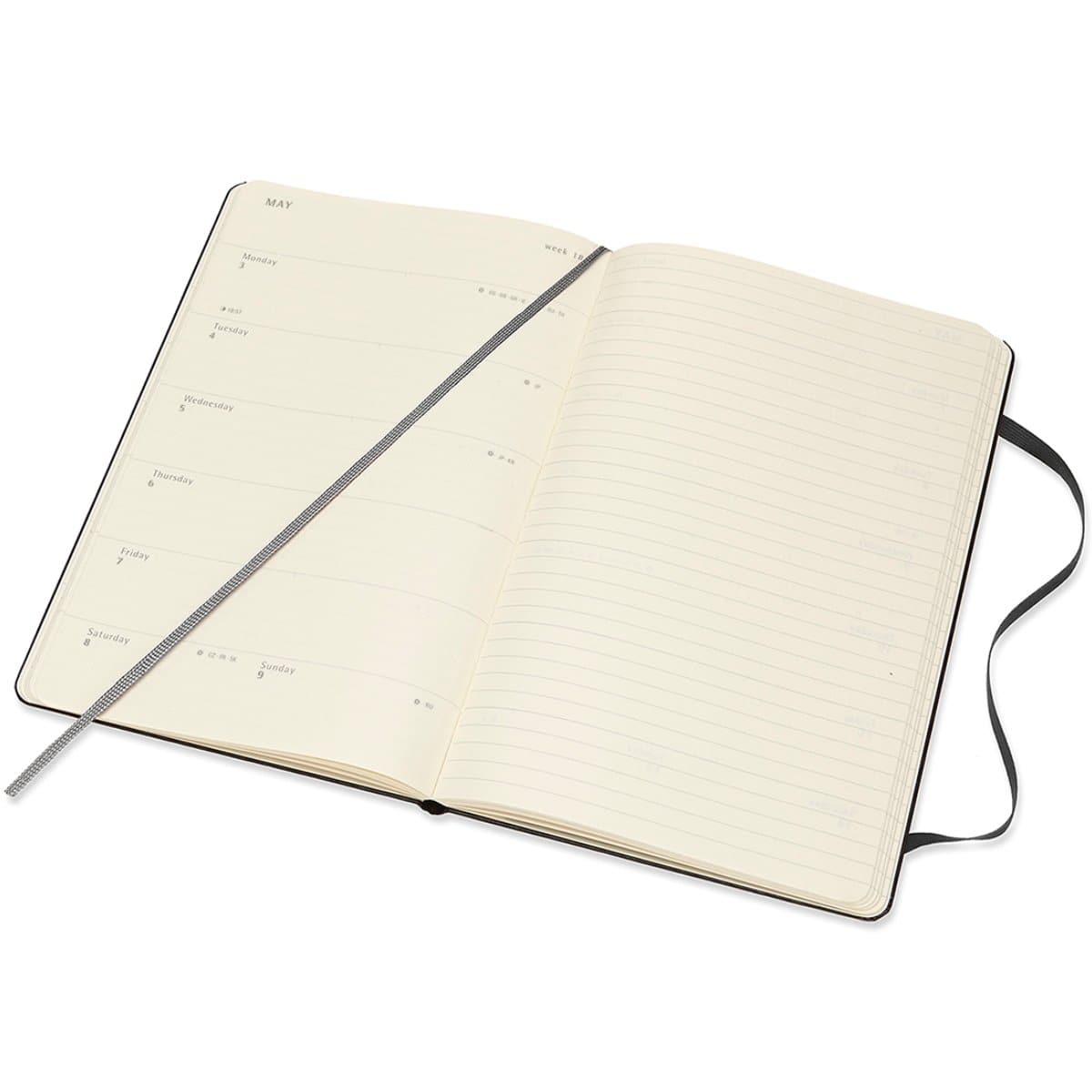 The 12-Month Weekly Notebook Diary/Planner in classic black balances week-by-week planning with note-taking. Each two-page spread shows the days of the week on the left, opposite a ruled page for notes, to-dos and random thoughts on the right. Dated from January to December 2026, this practical layout lets you see the whole week at a glance, while also providing the space and freedom of a notebook.