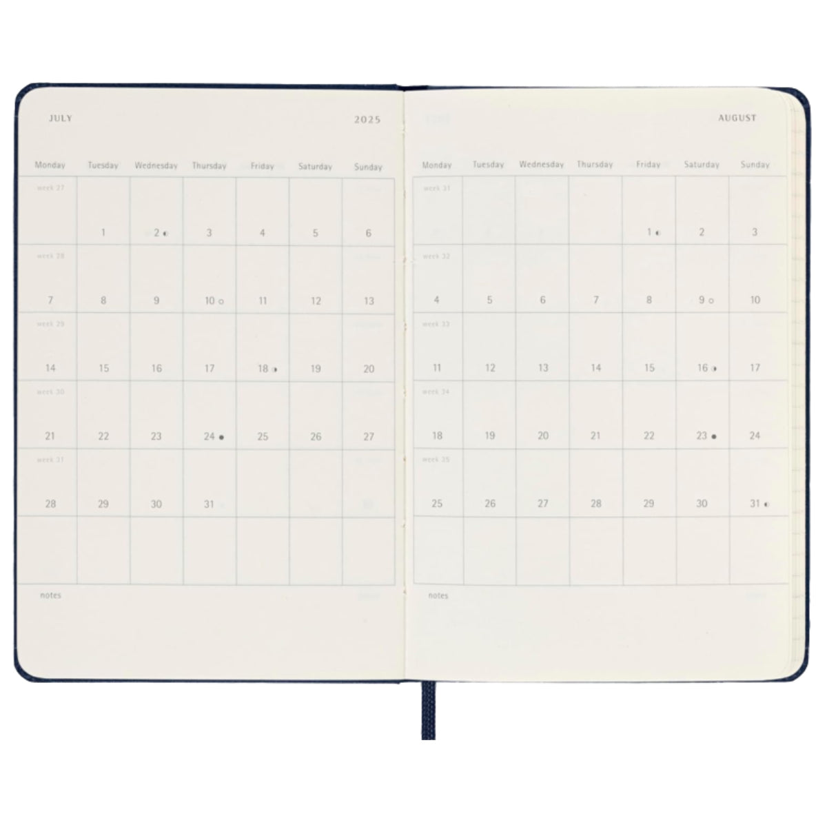 - the week on the left, a ruled page on the right